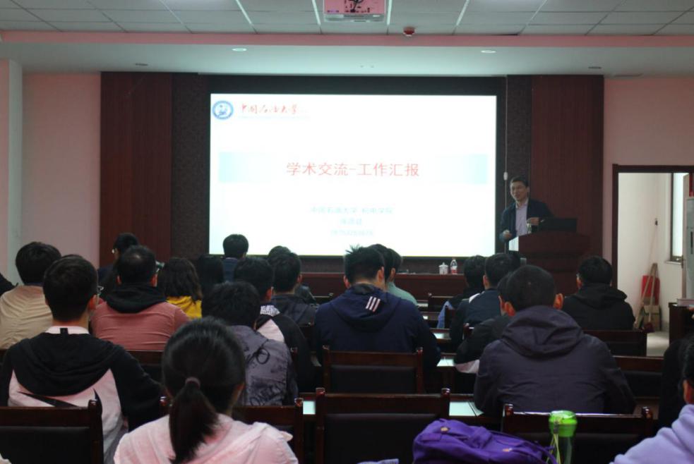报告从油气勘探开发及处理流程切入张教授团队的科研方向:石油装备、海洋工程装备和新能源开发利用,并对团队重点研究成果——海洋平台钻柱升沉补偿系统、海洋平台升沉补偿系统、隔水管动载补偿系统、海洋起重机、旋壳泵、射流泵、地热系统开发利用技术、电储能技术的研发工作进行了深入的阐述。最后,他还就其研究领域的热点问题与现场师生进行互动交流。
