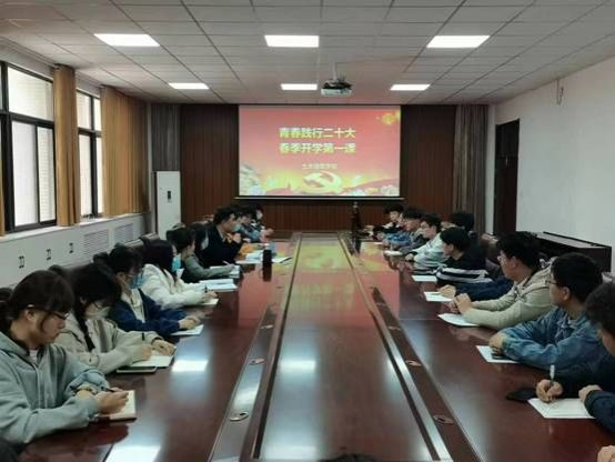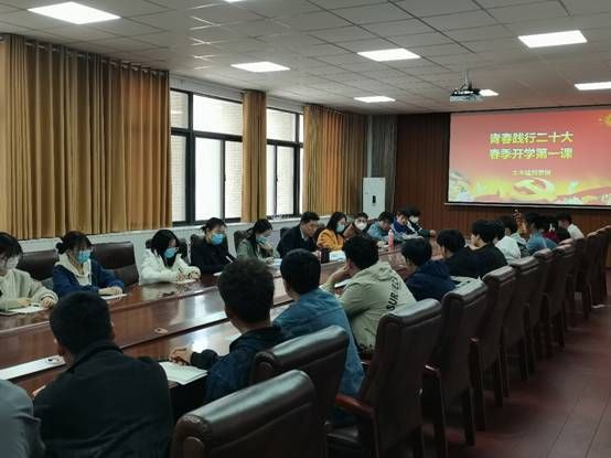 为更好激励学生以昂扬向上的精神面貌和良好心态开启新学期的学习生活,3月22日中午,学院党委书记段国强在工科3-224为学院师生讲授了一场生动的春季开学思政第一课。学院党委副书记张献文、全体辅导员和主要学生干部40余人聆听了第一课。