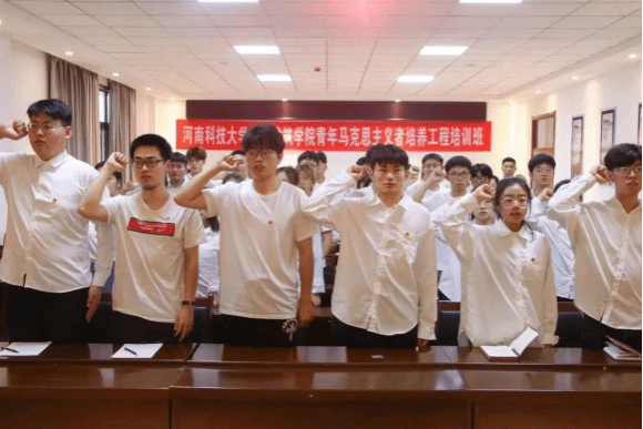 学员代表建环211班张元旭带领青马班学员进行集体宣誓,铿锵有力的宣誓声在会议室经久不息。