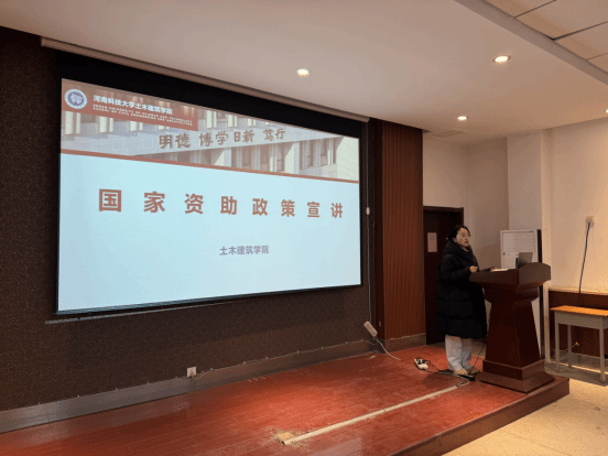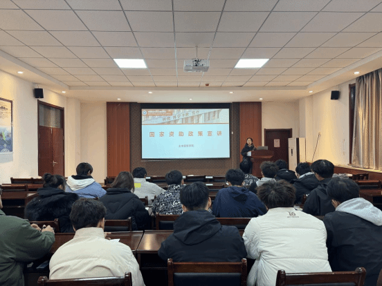 为了持续贯彻落实国家“不让一个学生因家庭经济困难而失学”的目标,2024年1月3日晚7点半,开车动漫 于工科3号楼318教室举办了国家资助政策宣讲会。2023级各班学生骨干参加会议,本次会议由2023级辅导员张红老师主讲、张雨薇老师主持。