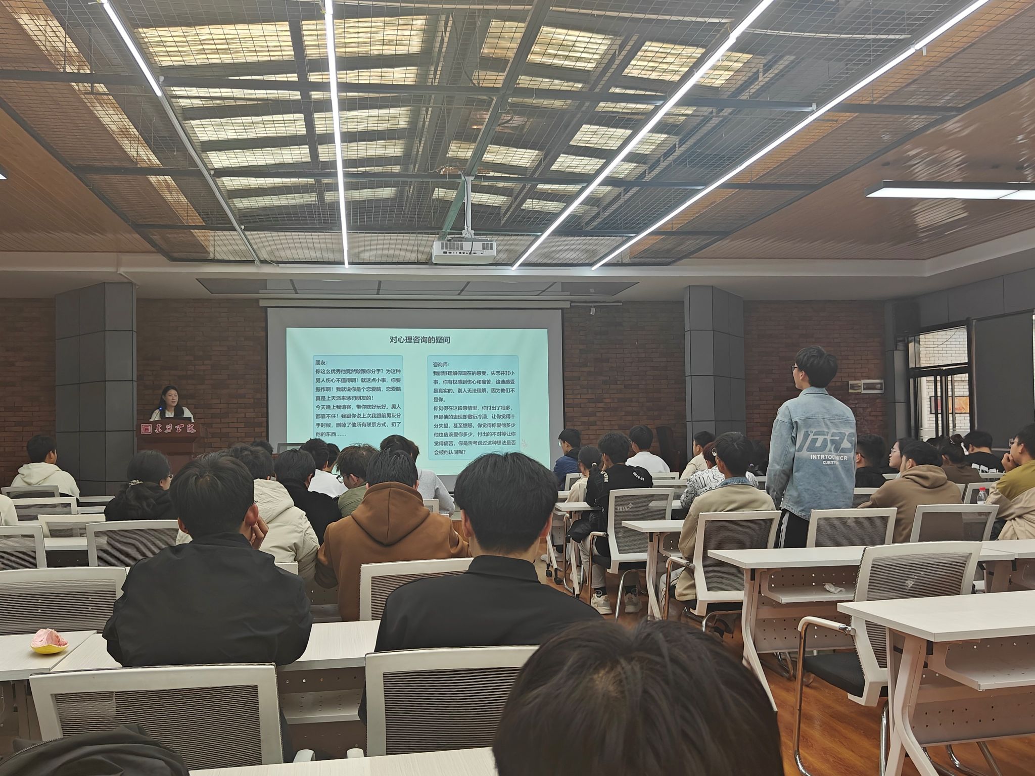 此外,刘老师还介绍了一些简单易行的朋辈心理委员队伍和同学交流时的必备技能,如停止说话、准备好倾听、让对方放松、理解对方想法等,并鼓励同学们在日常生活中多尝试这些方法,以在提升自身的心理素质能更好的帮助身边同学倾诉,帮他们解决问题。讲座的最后,刘老师还设立了互动环节,耐心解答了同学们提出的问题。同学们纷纷表示,通过这次讲座,他们对心理健康有了更深的理解,也学到了很多实用的心理调节技巧。