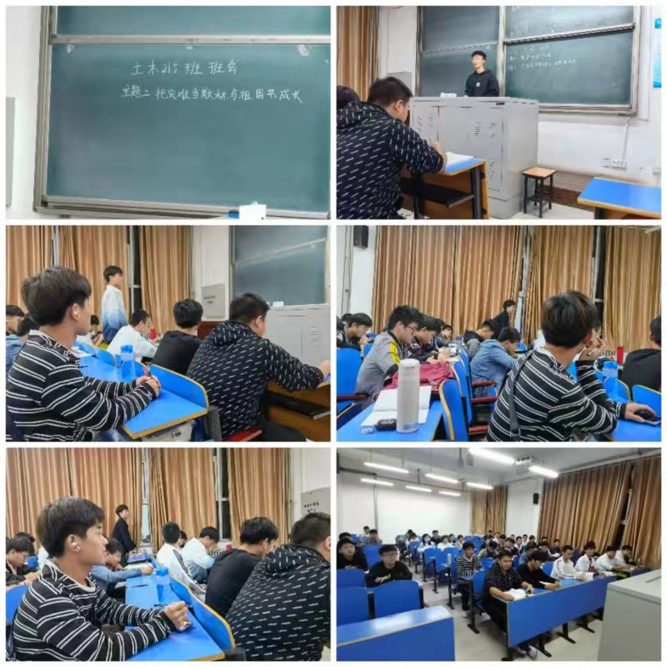 2021年10月25日晚上7:00,开车动漫 土木工程学院2021级新生在工科6号楼各班级自习室组织召开“把灾难当教材,与祖国共成长”主题班会。主题班会由各班班长组织进行。