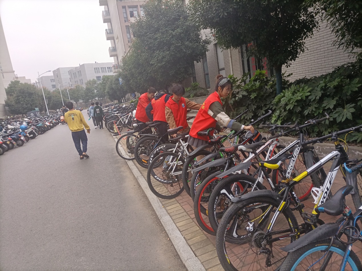 同学们积极响应,踊跃参加,兴高采烈的在“文明是快乐的源泉”宣传标语上写下自己的名字。本次活动分为8各小组,活动伊始,各负责人合理分配了各值班人员的值班地点及工作任务,活动过程中,值班人员正确引导同学们遵守校园交通规则,文明规范将车辆停放在台子上,并倡导同学们注意公共卫生,为创建校园文明贡献自己的一份力量。