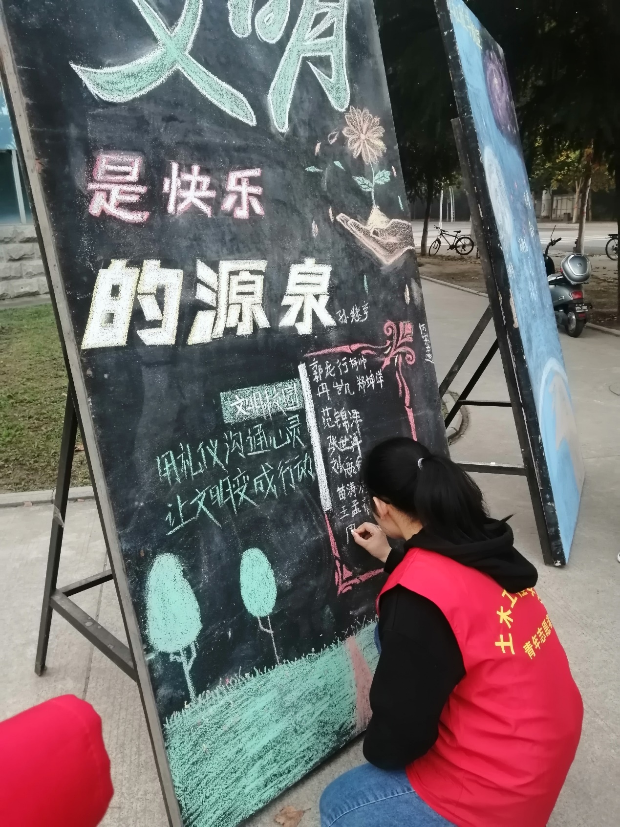 为进一步提高学生的文明素质,促进学生文明行为习惯的养成,营造文明、和谐、健康、向上的校园氛围。10月30、31日,土木工程学院青年志愿者协会、第38期入党积极分子全体学员在乾园宿舍及乾园食堂周边区域开展了“文明是快乐的源泉”基础文明活动。