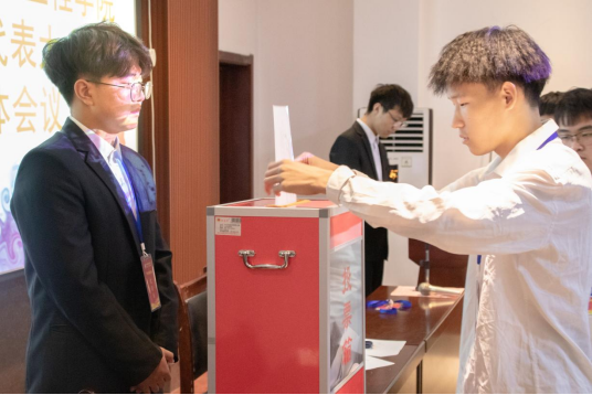 大会开始前,各项前期准备工作有条不紊地进行:学代会筹备工作组将分工流程细分至每一个负责人,各项准备工作得以高效开展。5月23日分别召开了代表团召集人会议、代表团第一次会议、代表团团长会议、预备会议。23日下午16:30学代会在庄严雄壮的国歌中隆重开幕,在王晶老师的主持下,领导嘉宾和全体代表参加第一次全体会议;接着召开代表团第二次会议、主席团第一次会议。5月24日召开第二次全体会议、主席团第二次会议、第三次全体会议。会议听取并审议第四届学生会的工作报告;选举产生第五届学生会主席团成员:张存存、段志成、黄家辉;选举产生第五届学生代表大会常设机构;选举产生出席校级学生代表大会的代表13名;表决并发出了倡议书。会议圆满完成各项议程,并于24日下午在激昂的校歌中胜利闭幕。