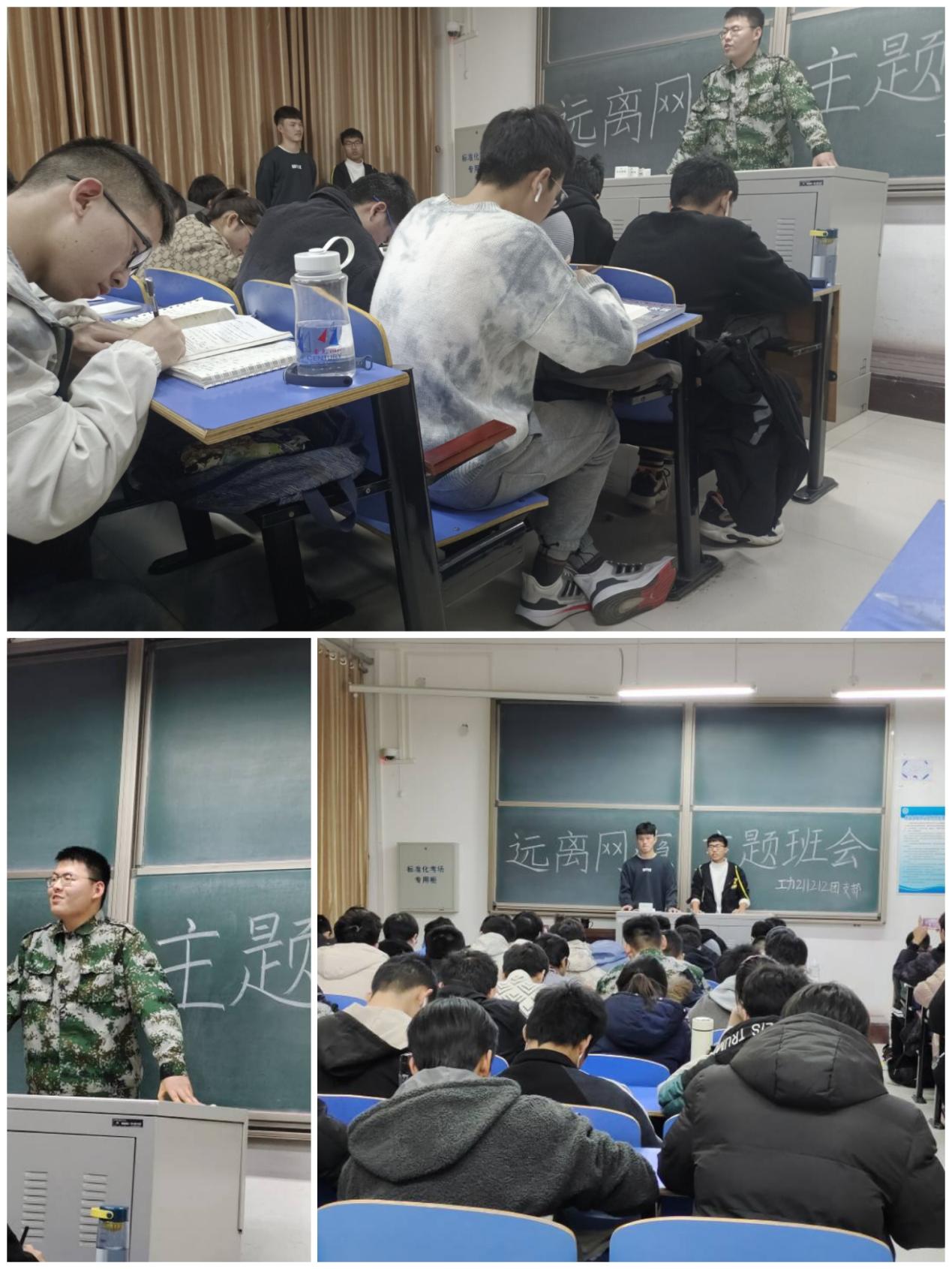 2021年12月16日晚上7:00开车动漫 土木工程学院21级新生在工科六号楼各班级自习室组织召开“远离网瘾”主题班会。本次主题班会由各班班长组织进行。