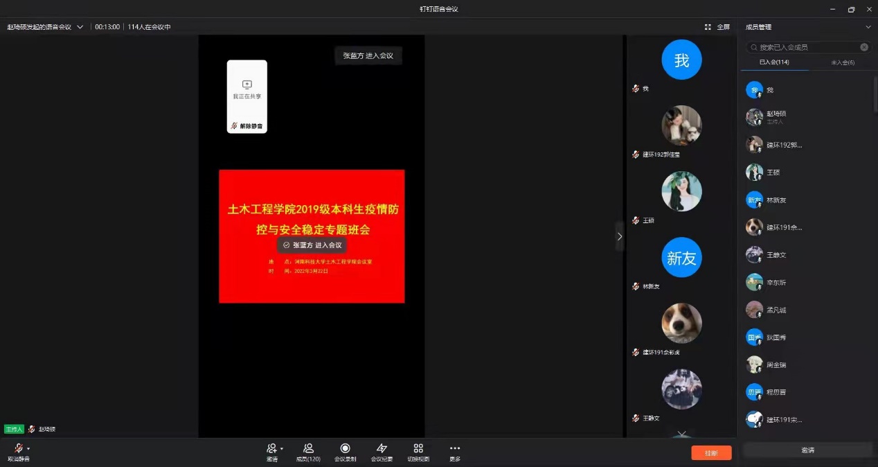 国内疫情多点散发相继出现的本土病例,导致疫情呈现快速蔓延趋势,疫情传播风险和防控压力持续增大,防控形势异常复杂严峻。土木工程学院认真贯彻落实学校进一步做好疫情防控工作会议精神。第一时间召开疫情防控工作布置会,李友军副校长现场指导工作,学院党委副书记召开年级委、各级学生干部工作会议,学院各年级辅导员分别召开疫情防控专题年级会,班主任召开班会,毕业设计指导老师开展组会,“全员”给予学生关心关怀。对低年级同学规范课堂、宿舍考勤制度,保证疫情之下的学风建设;对毕业年级进行就业指导,为考研学生提供复试专用教室;组织“我的快乐与你分享、我与科大的春天、拔河比赛”等系列心理健康活动,全方位服务学生全面发展与成长。全体辅导员深入学生宿舍看望慰问学生,详细了解同学们的学习生活情况,询问学习及日常生活上遇到的困难,鼓励学生努力适应新情况,在加强个人防护的同时,优化时间安排,顺利完成学习任务。