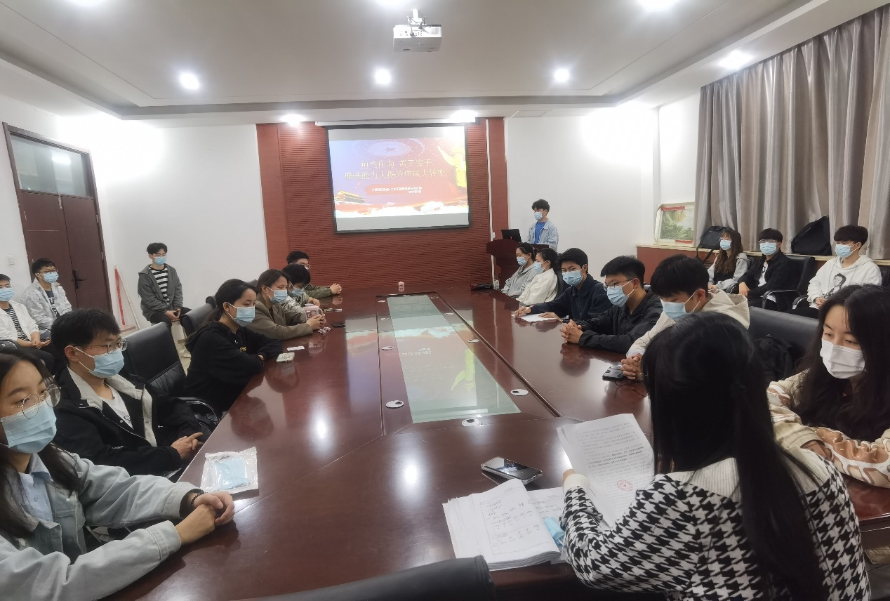 2022年4月28日下午三点,土木工程学院本科生第三党支部在工科三226会议室召开了以“担当作为,苦干实干,推进能力大提升作风大转变”为主题的党日活动。参加本次会议的为本科生第三党支部书记全体党员,会议由支部书记张红老师主持。