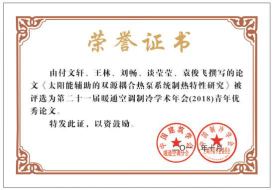 土木工程学院王林教授受邀在本次年会上做了一场题目为“面向温湿度独立控制空调的单效吸收/双压缩复合热泵系统”的特邀报告,会后与现场的同行进行了学术交流,分享了我校在制冷空调领域的最新研究成果。值得祝贺的是,由王林教授指导,研究生付文轩所撰写的“太阳能辅助的双源耦合热泵系统制热特性研究”被评选为此次会议青年优秀论文。据悉,青年优秀论文是从投稿的2000余篇论文中经全国专家评审,从中选择的排名前5%的优秀论文。这显示了我校建筑环境与能源应用工程(建环)专业在全国日益提升的影响力,展示了专业学科团队不断增强的学术水平,对我校的学科建设和发展具有积极的推动作用。