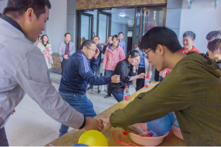 运动会分为四个项目,分别是“气球保卫战”、“蒙眼弹盖”、“筷运乒乓”、“桌上冰壶”。学院精心准备,全院教工积极参与其中。比赛中,老师们精神饱满,认真对待每一个比赛项目,充分显示了土木学院教工积极进取、蓬勃向上的精神风貌。运动场上气氛热烈,充满了欢声笑语。