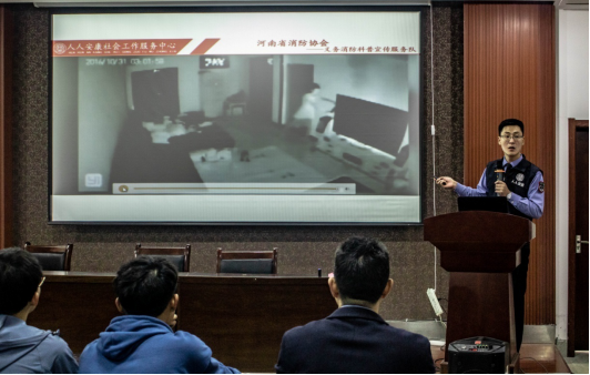 首先,李主任通过一个个触目惊心的案例,向大家再次重申了消防安全的重要性,同时为老师与同学们普及了消防安全知识,并强调要时刻牢记“患险于明火,防范胜于救灾,责任重于泰山”。随后,李主任向大家展示了常见消防用具的具体使用方法,遇难逃生的重要注意事项。最后,李主任运用实例讲解火灾发生时如何运用消防知识阻止火势发展以及如何逃生,给在场师生留下深刻印象。