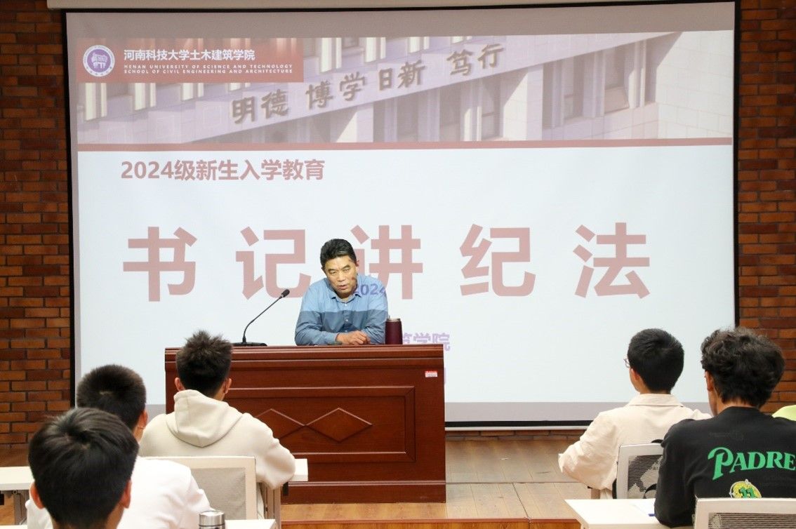 会议上,学院党委书记段国强围绕《中国共产党纪律处分条例》对六大类纪律的规定,开展了纪律教育第一课,以理论联系实际,坚持问题导向,深入地阐述了纪法,教育引导教育引导全体2024级新生学生干部树牢纪法观念,增强自律意识。书记告诫大家,“无规矩不成方圆”,纪律和规则是学生平时学习和生活中不可缺少的。学校制定的各种纪律和行为规范就像是校园里的“红绿灯”,时刻提醒我们注意自己的言行。遵守校纪校规就是严格按遵守学校规定, 在工作中担当作为、求实奋进,切实为学院发展添砖加瓦。