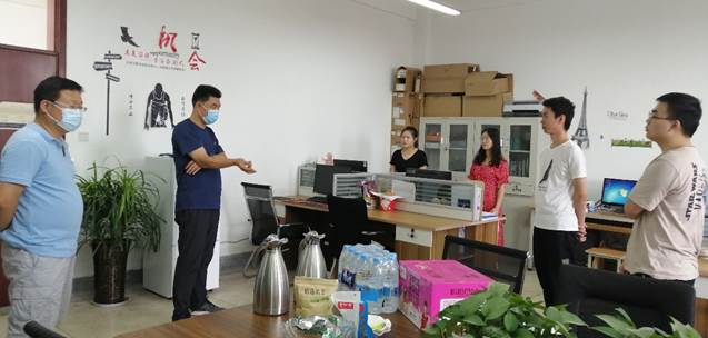 近日,全国多个省份相继出现本土病例,疫情呈现快速蔓延趋势,防控形势异常复杂严峻。为做好学院新冠肺炎疫情防控工作,确保留校研究生安全, 8月11日上午,学院党委书记段国强,副院长马建军一行来到研究生实验室,看望目前仍然在校的研究生,详细了解当前在校研究生人数和他们的学习、生活状况,叮嘱他们在暑期要严格遵守疫情防控的相关规定,充分利用暑期在校时间做好科学研究工作,注意实验室、宿舍等用电安全,并祝大家暑期学习生活愉快,身体健康。
