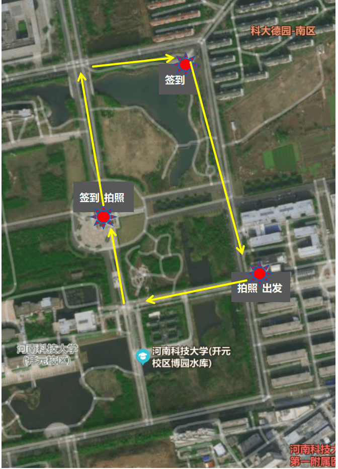 (2)本次活动按照要求路线从学院二楼中厅拍照出发(发放活动参与券),途经博园、牡丹园、到达国旗广场,并在国旗广场签到合影,然后到达德园西门广场处签到后返回学院二楼中厅(收回活动参与券),具体路线见地图。