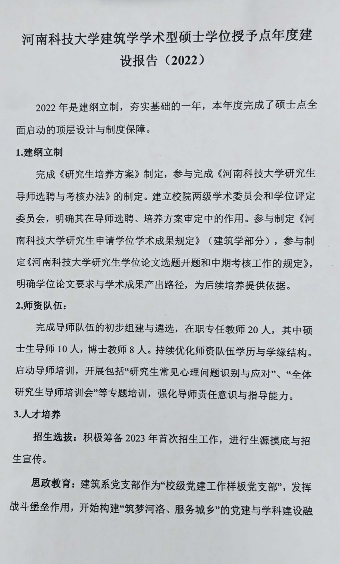 开车动漫 建筑学学术型硕士学位授予点年度建设报告(2022年)