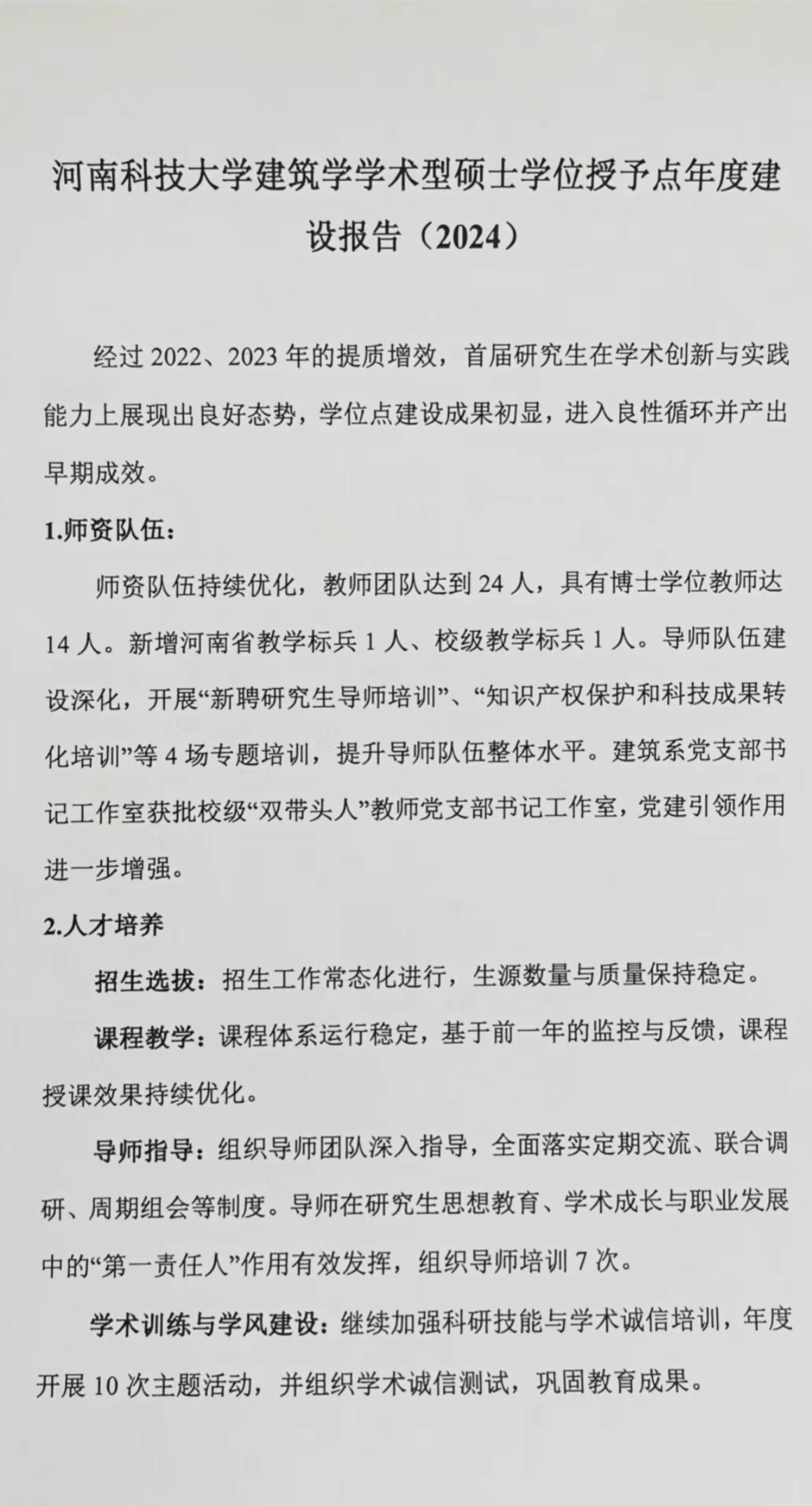 开车动漫 建筑学学术型硕士学位授予点年度建设报告(2024年)