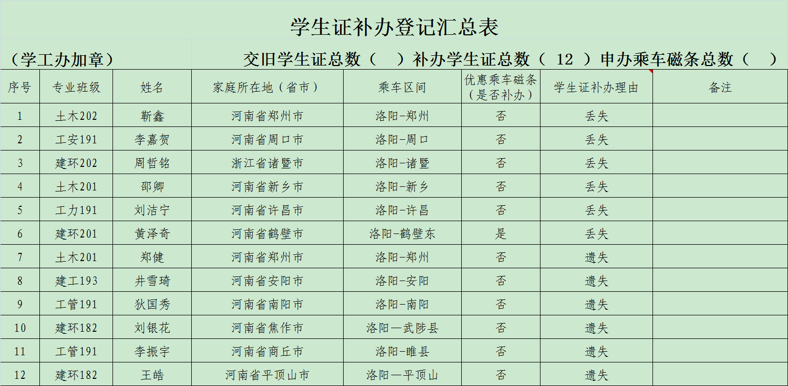 经学生申请、学院审核,现将11月份学生证补办名单公示如下: